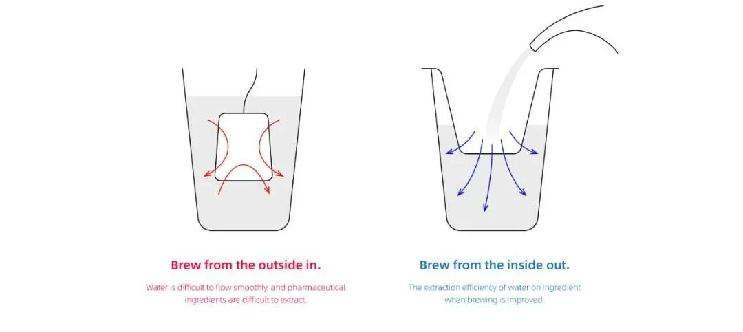 This Chinese medicine tea bag enhances the extraction efficiency of the active ingredients in herbs when brewing, increasing the concentration of effective medicinal components in the brewed liquid, thereby improving its therapeutic effects.