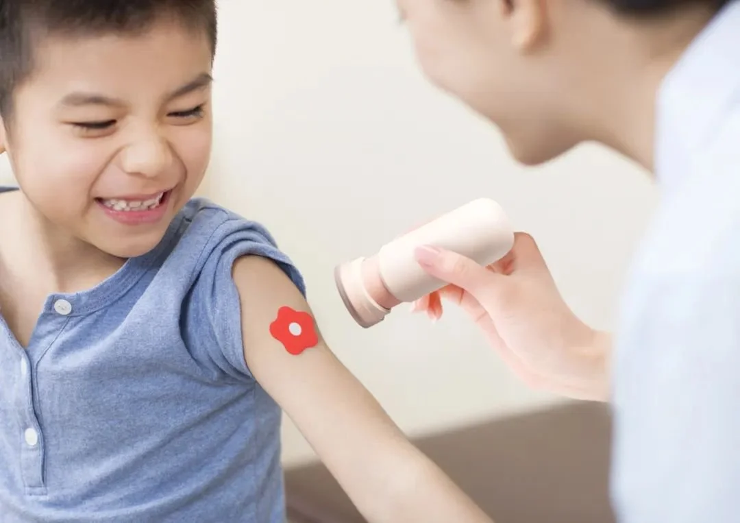 The Little Red Flower Microneedle Vaccine is a nearly painless vaccine kit designed for children. When healthcare professionals use this product to administer a vaccine, they place the microneedle patch shaped like a small red flower on the child’s arm. This process is similar to the child receiving a red flower as a reward after getting a shot. The product ensures safe injection, is easy to use, and is designed in a way that aligns with children’s psychological traits, offering a more positive experience. This design enhances the child’s interaction with medical staff, fostering a sense of trust and comfort during the vaccination process.